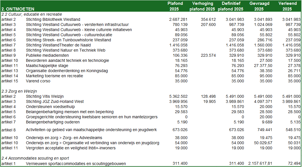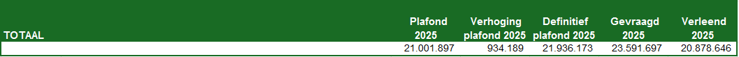 In 2025 wordt er in totaal €20.878.646 aan jaarsubsidies verleend.